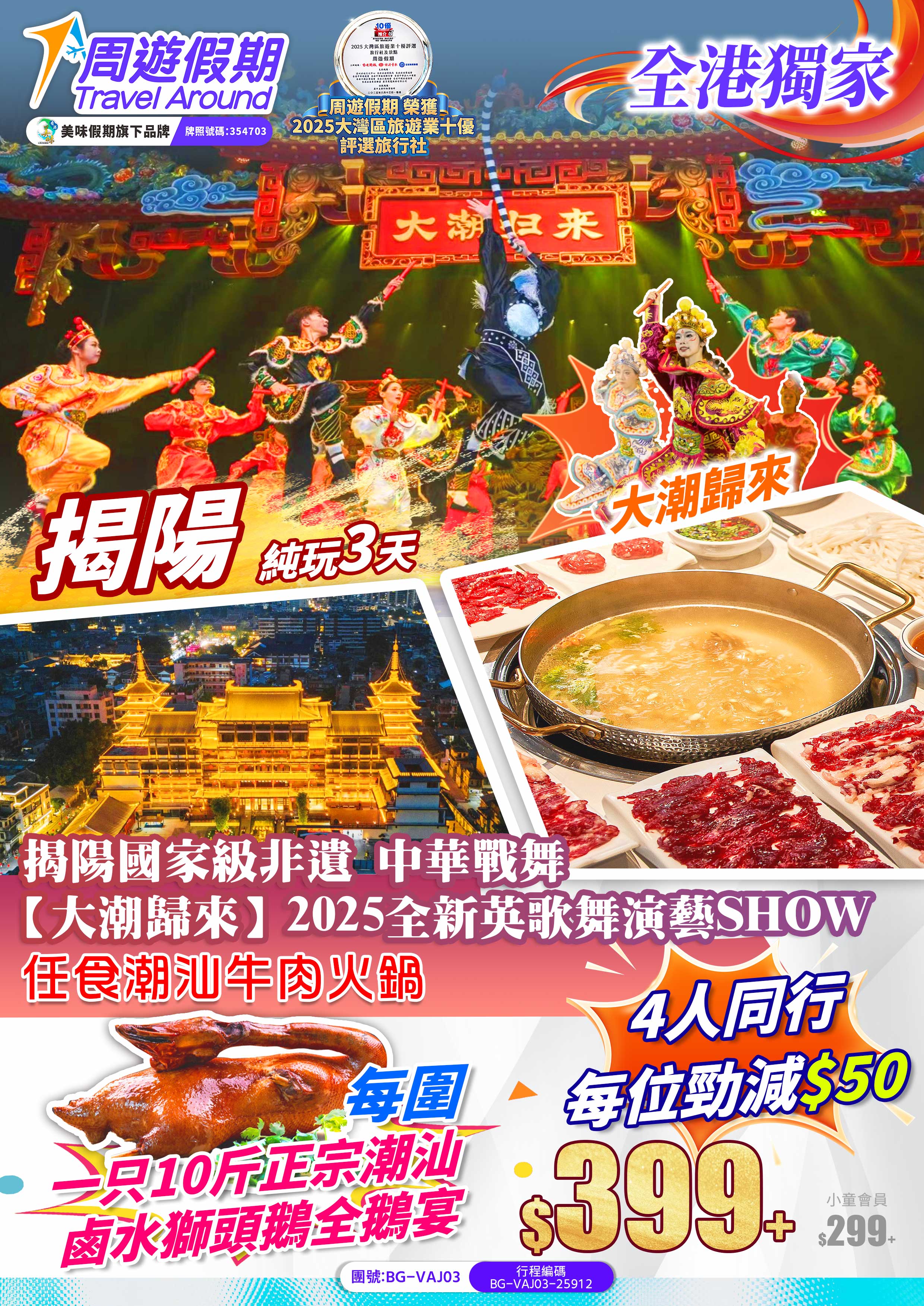首頁 > 揭陽 中華戰舞 大潮歸來 英歌舞演藝SHOW 純玩3天